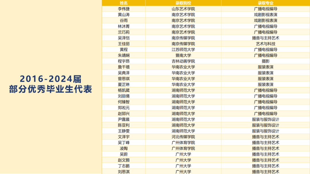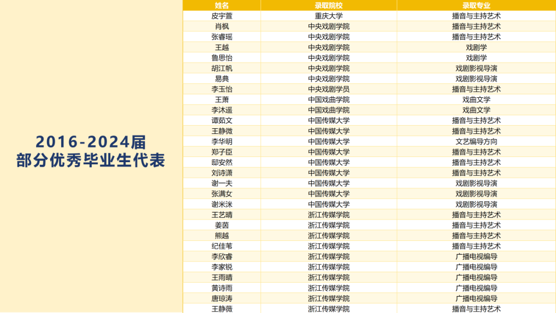 围绕省统考叙事性作品写作、文学作品朗诵、命题即兴表演的考核维度,强化剧本创作、情感表达、表演技法等传统功底,结合短视频创作思维掌握传媒与影视生态发展逻辑。